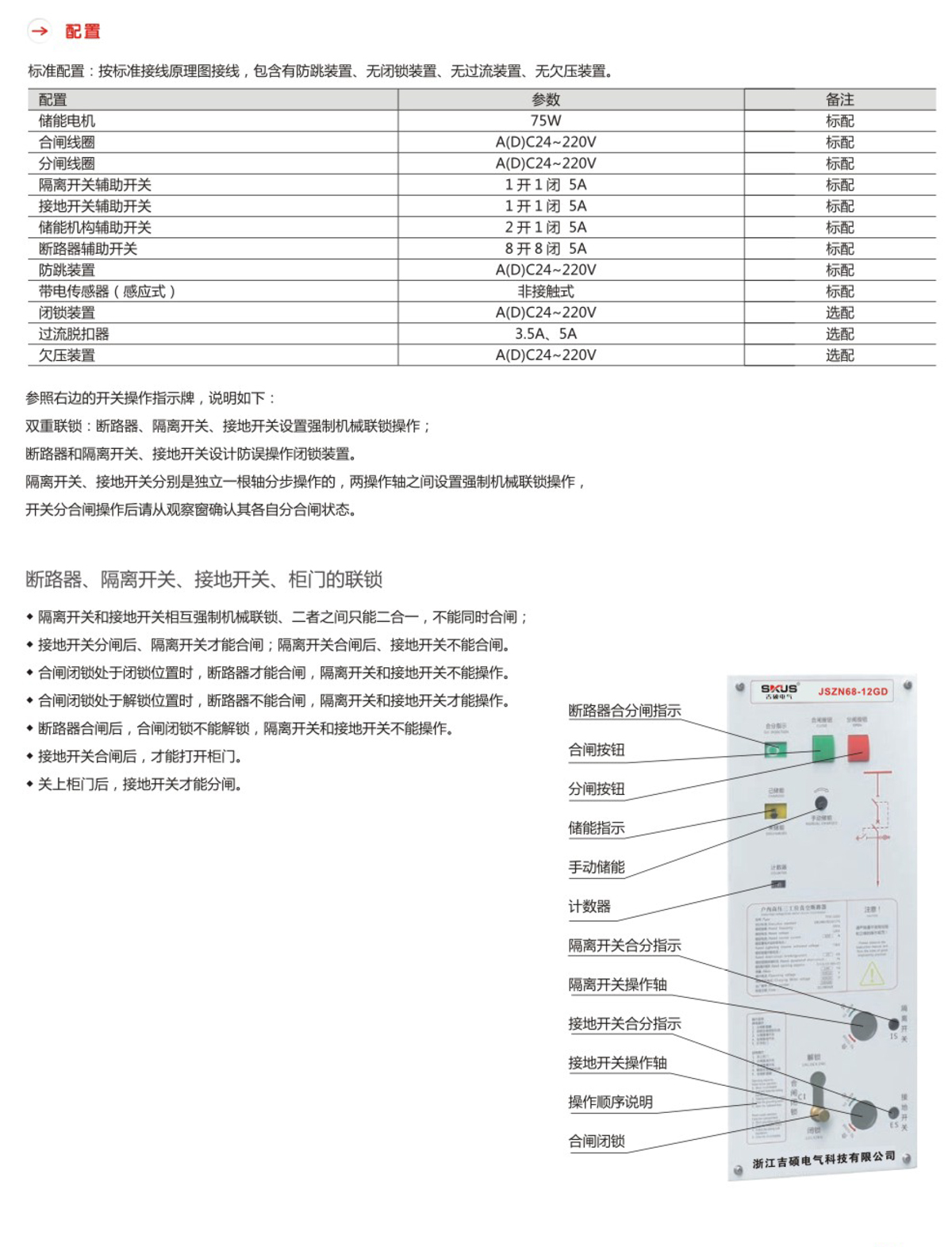 概述:JSZN68-12GD系列户内高压三工位真空断路器具有优异的电气、机械性能,机构可靠稳定、寿命长。主回路采用固封极柱,提高了断路器的环境适应性和绝缘可靠性;可靠的机械和电子性能,延长的机械寿命和电子寿命,使断路器的免维护成为可能。其可用于3.6-12kV电力系统,作为电网设备,工矿企业动力设计的保护盒控制单元,适用于各种不同性质的负荷和频繁操作、多次开断短路电流的场合。产品拥有完善的机械和电气联锁装置,具有操作稳定性和可靠性,确保操作人员和设备的安全,确保用电安全。